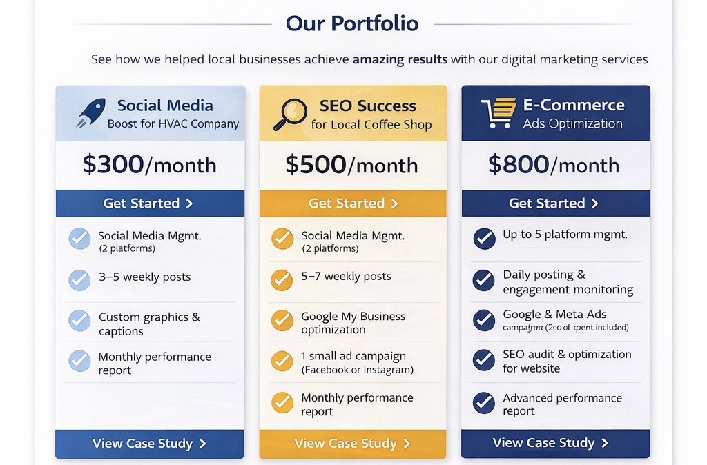 We offer different pricing packages tailored to fit your specific needs and budget. Investing in our services means investing in real results that grow your business and bring in customers.